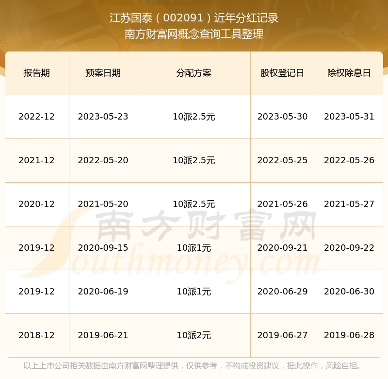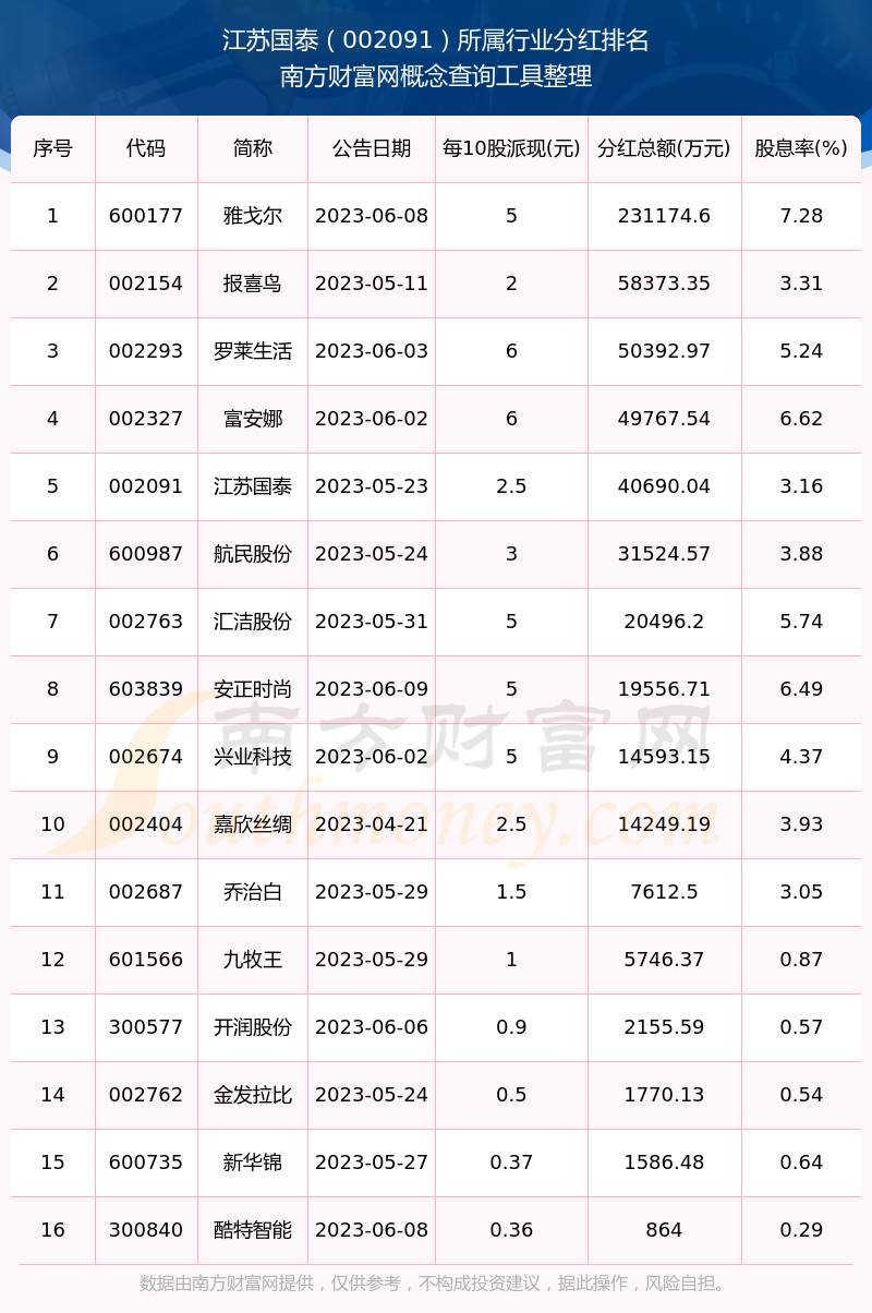 二、江苏国泰002091行业分红排名