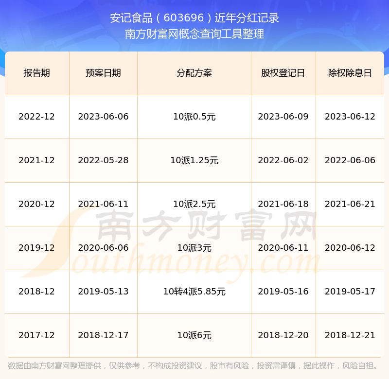 按照开云手机web版登录入口趋势选股系统统计,安记食品所属行业为调味品行业,调味品行业分红排名情况如下表: