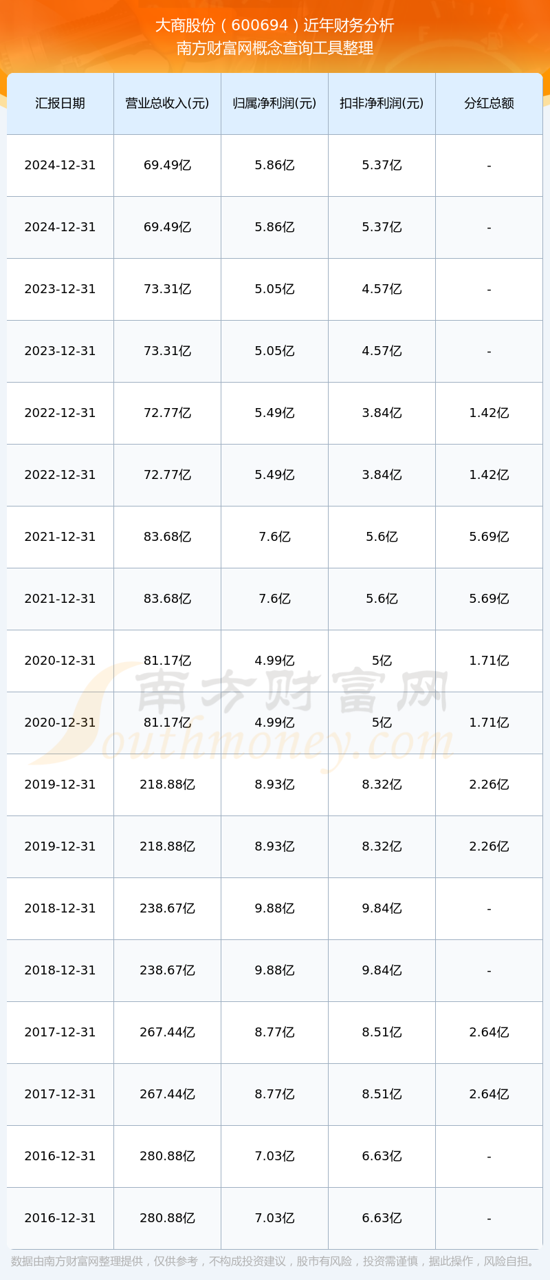 近年大商股份分红派息情况如下表所示: