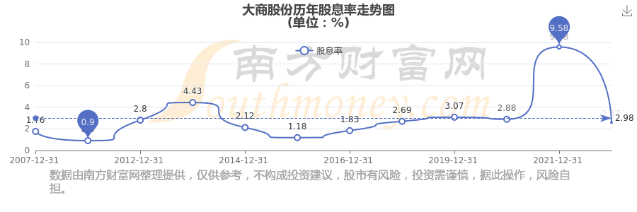 大商股份历年股息率走势如下图: