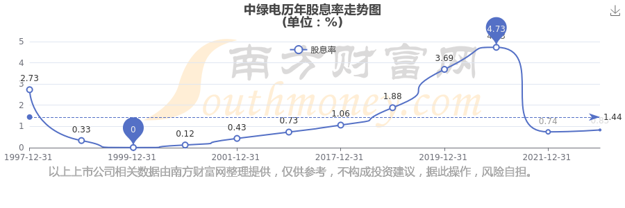 近年中绿电年度股息率走势如下图: