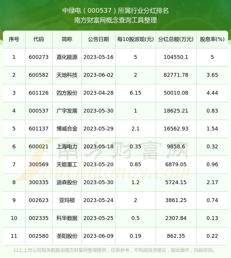 二、中绿电000537行业分红排名