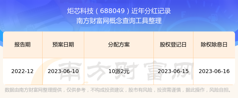 炬芯科技最新一次公布的分红方案:10派2元。