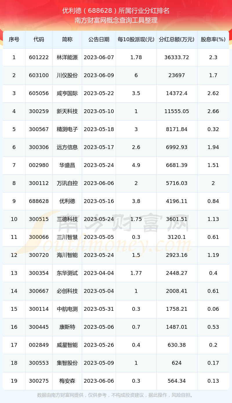 按照开云手机web版登录入口趋势选股系统统计,优利德所属行业为仪器仪表行业,仪器仪表行业分红排名情况如下表: