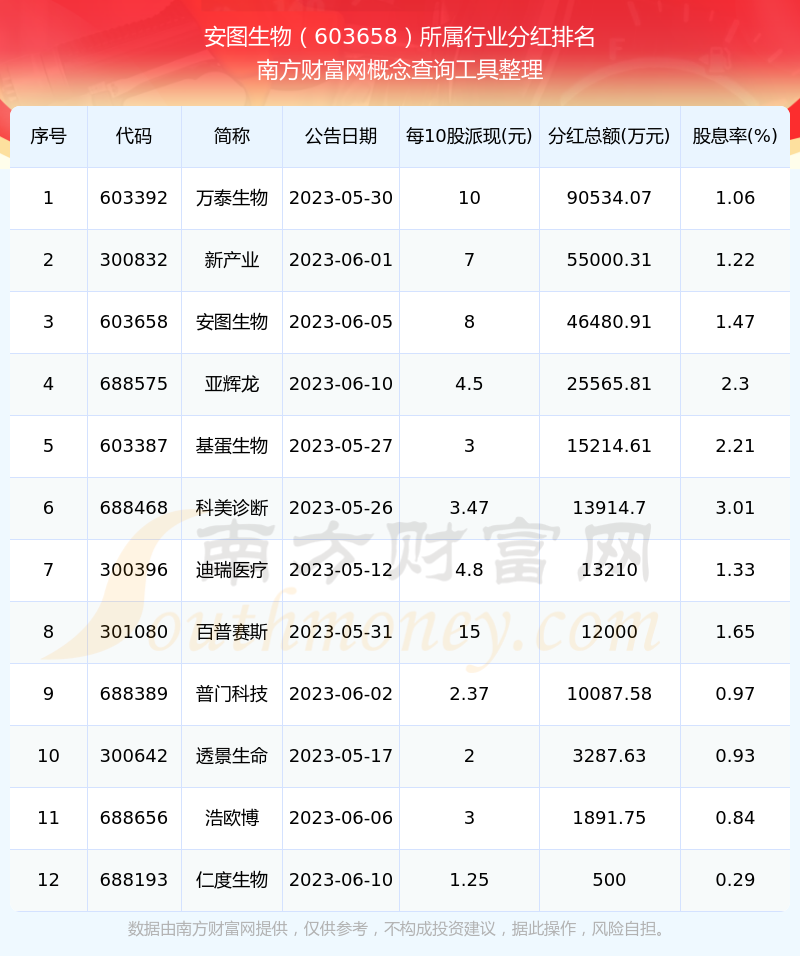 按照开云手机web版登录入口趋势选股系统统计,安图生物所属行业为试剂行业,试剂行业分红排名情况如下表: