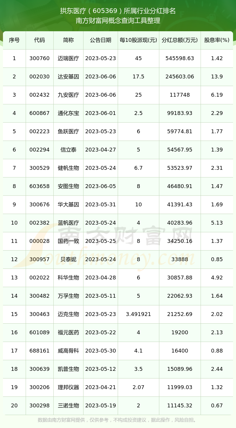 按照开云手机web版登录入口趋势选股系统统计,拱东医疗所属行业为医疗器械行业,医疗器械行业分红排名情况如下表: