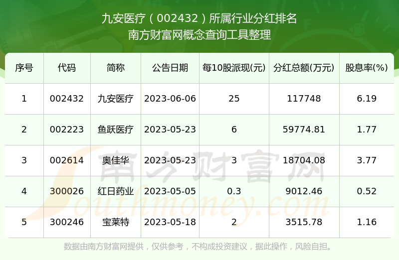 按照开云手机web版登录入口趋势选股系统统计,九安医疗所属行业为医疗器械行业,医疗器械行业分红排名情况如下表: