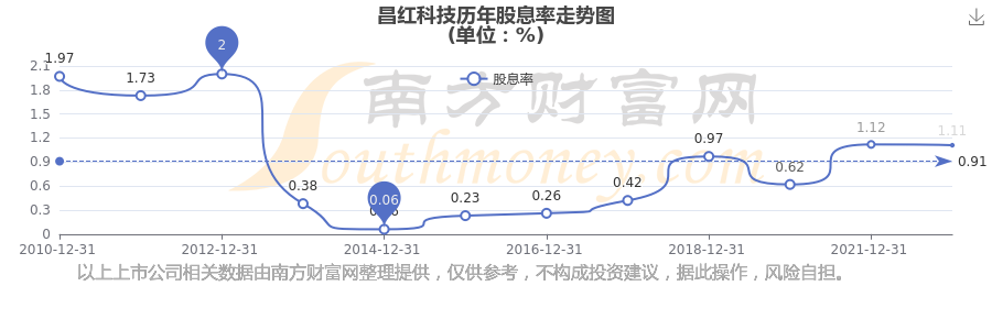 昌红科技最新一次公布的分红方案为10派2元。本次权益分派股权登记日为2023年5月25日,除权除息日为2023年5月26日,派息日为2023年5月26日。