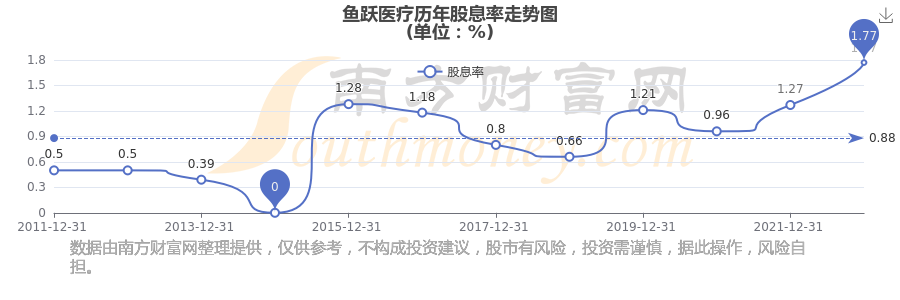 近年鱼跃医疗年度股息率走势如下图: