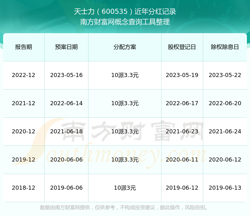 天士力最新一次公布的分红方案:10派3.3元。