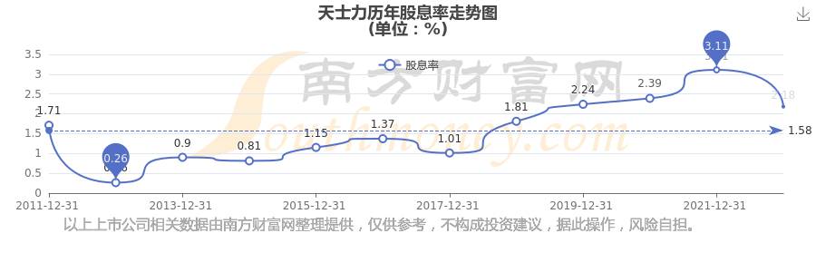 近年天士力年度股息率走势如下图: