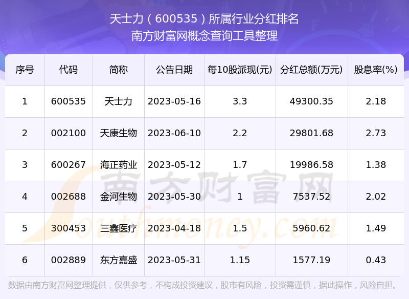 二、天士力600535行业分红排名