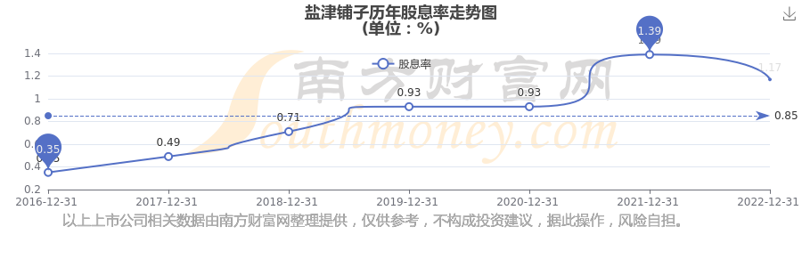 近年盐津铺子年度股息率走势如下图: