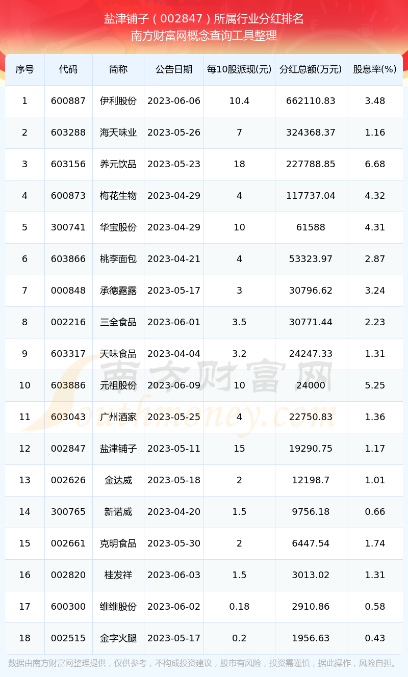 二、盐津铺子002847行业分红排名
