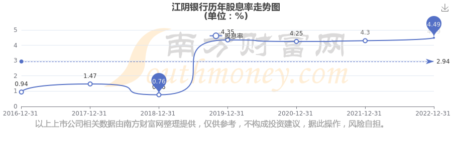 近年江阴银行年度股息率走势如下图: