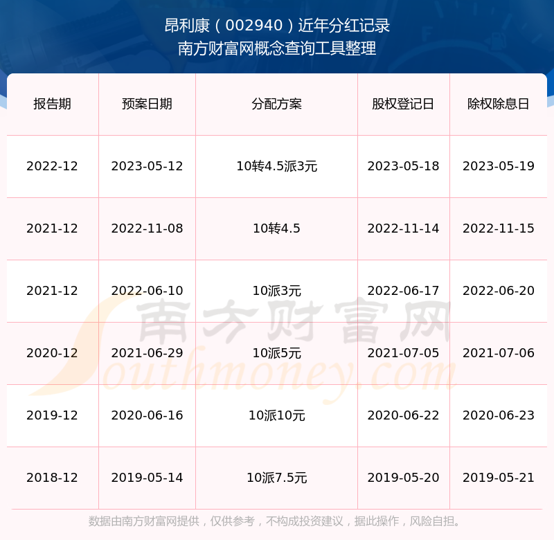 近年昂利康分红派息情况如下表所示: