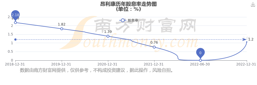昂利康历年股息率走势如下图:
