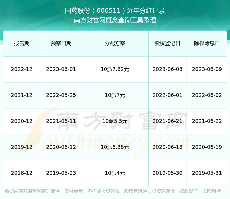 国药股份最新一次公布的分红方案为10派7.82元。本次权益分派股权登记日为2023年6月8日,除权除息日为2023年6月9日,派息日为2023年6月9日。