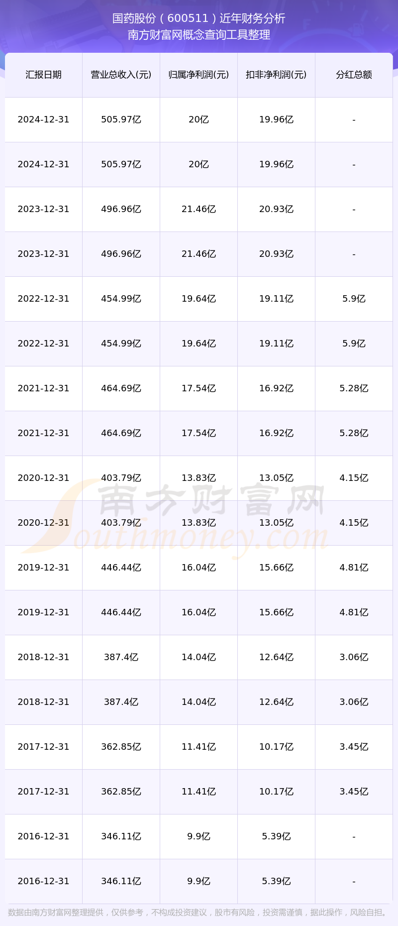 国药股份历年分红派息情况如下表所示: