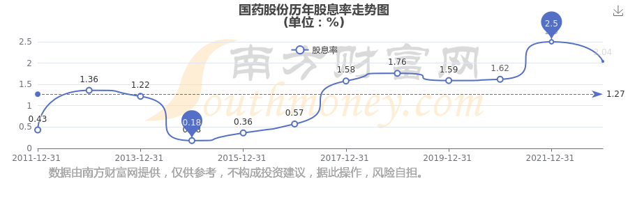 国药股份历年股息率走势如下图: