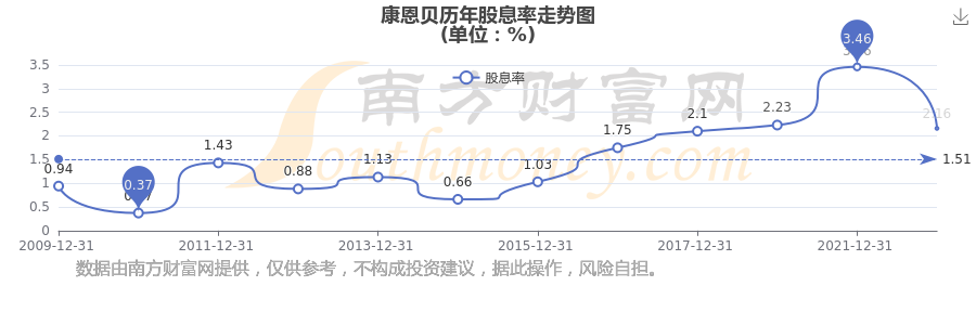 近年康恩贝年度股息率走势如下图: