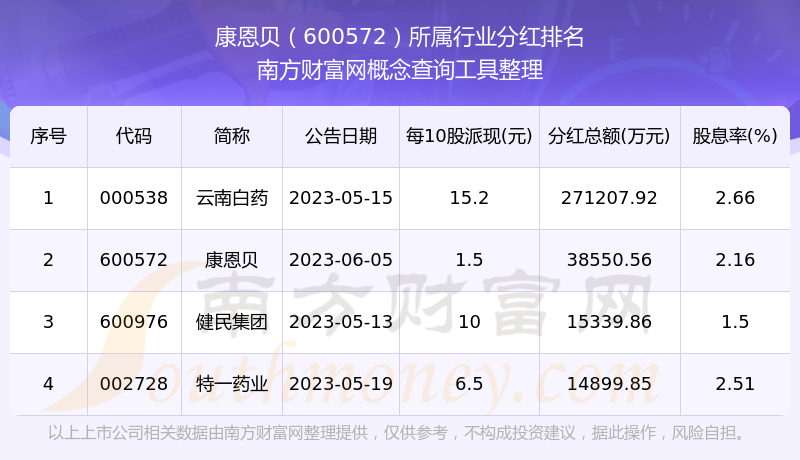 二、康恩贝600572行业分红排名