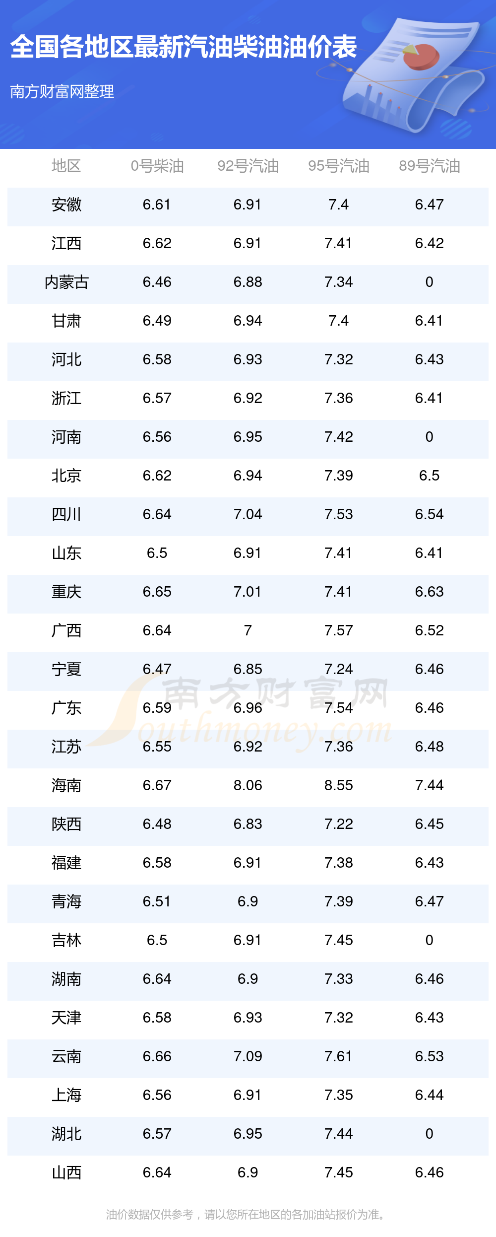 本站提供的油价数据仅供参考,具体数据以加油站报价为准。