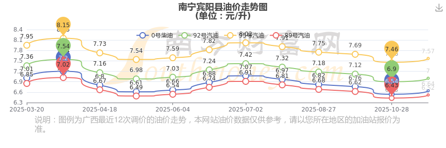 南宁宾阳县11月19日0号柴油历史油价调整走势图
