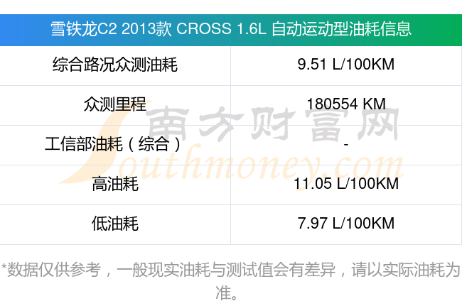 根据车主实测数据,该车型低油耗为7.97升/百公里,高油耗为11.05升/百公里,综合路况众测油耗为9.51升/百公里。