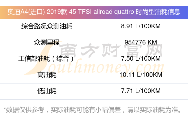 数据仅供参考,一般现实油耗与测试值会有差异,请以实际油耗为准。