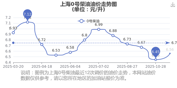 上海汽油、柴油11月19日每升最新价格为:95号汽油为7.35元,涨了0.11元;92号汽油为6.91元,涨了0.1元;89号汽油为6.44元,涨了0.09元;0号柴油为6.56元,涨了0.11元,调整时间为11月11日。
