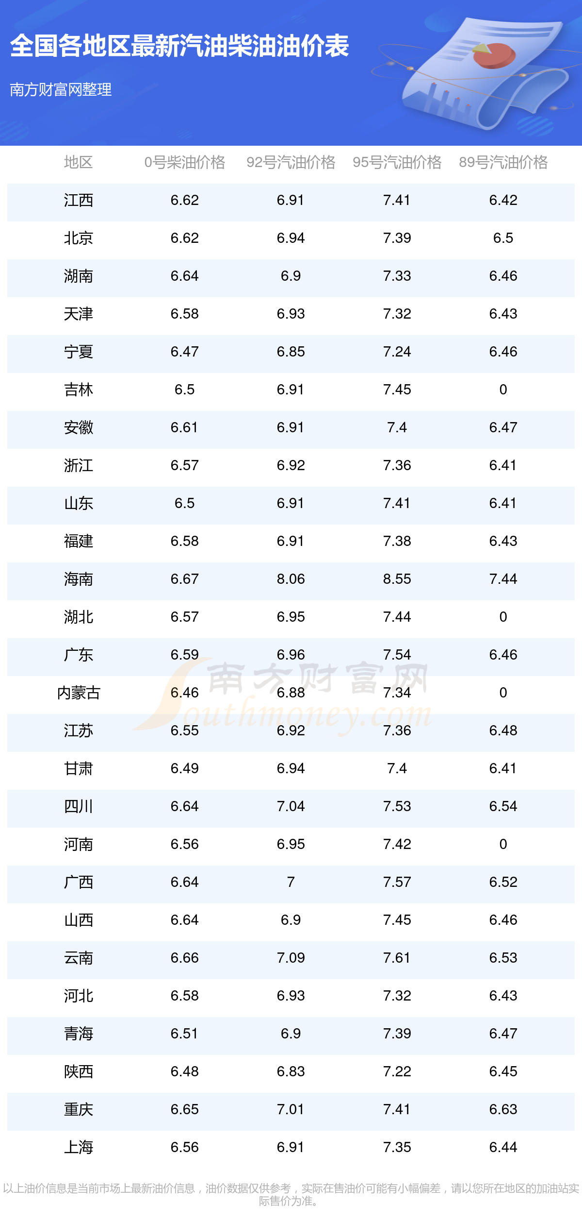 0号柴油平均价格:7元每升,其中,最高为海南,价格6.67元/升,最低为内蒙古,价格6.46元/升。