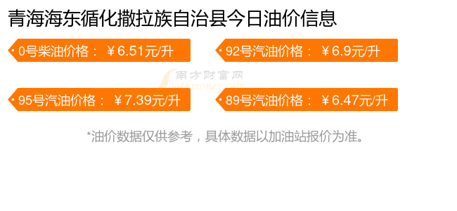 油价调整最新消息:11月19日青海海东循化撒拉族自治县汽油柴最新油价是多少?具体每升为:11月11日调整后,92号汽油为6.9元,升了0.1元,升幅达1.47%;95号汽油为7.39元,升了0.1元,升幅达1.37%;89号汽油为6.47元,升了0.09元,升幅达1.41%;0号柴油为6.51元,升了0.1元,升幅达1.56%。下一轮油价调整时间11月24日24时。