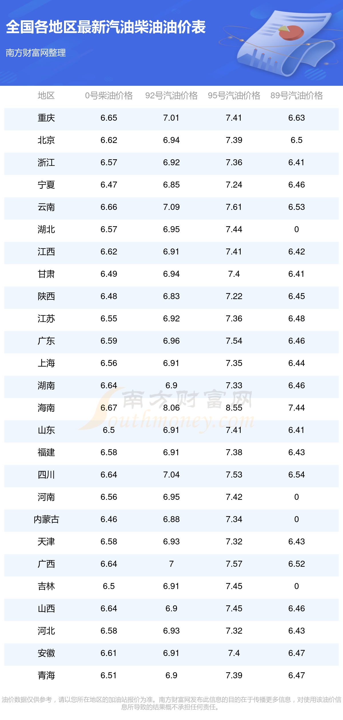 以上油价信息是当前市场上最新油价信息,油价数据仅供参考,实际在售油价可能有小幅偏差,请以您所在地区的加油站实际售价为准。