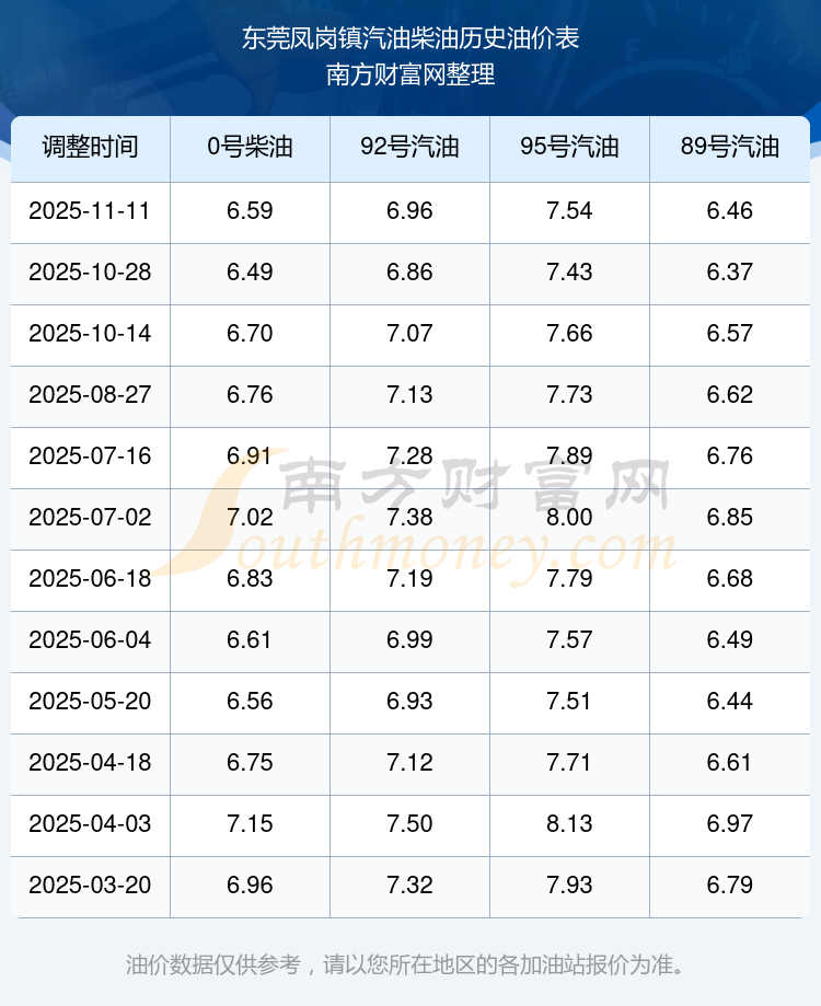 东莞凤岗镇历史油价表