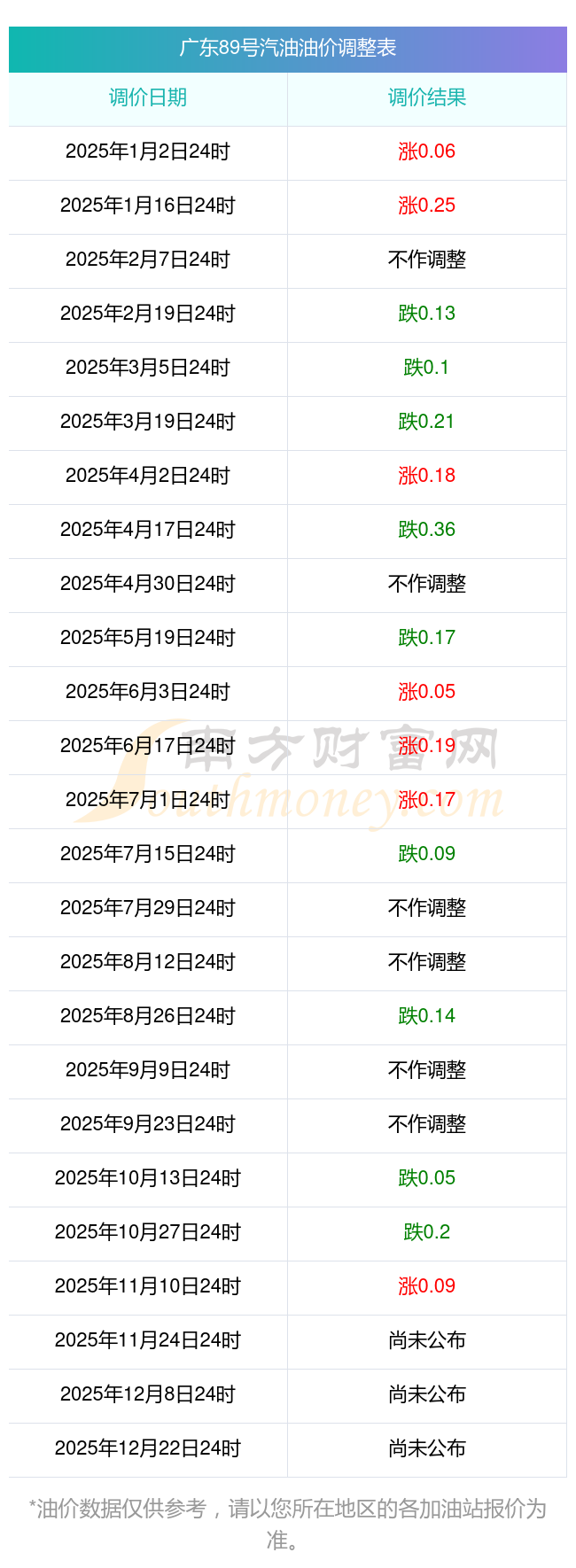 东莞2025年油价调整时间及价格表