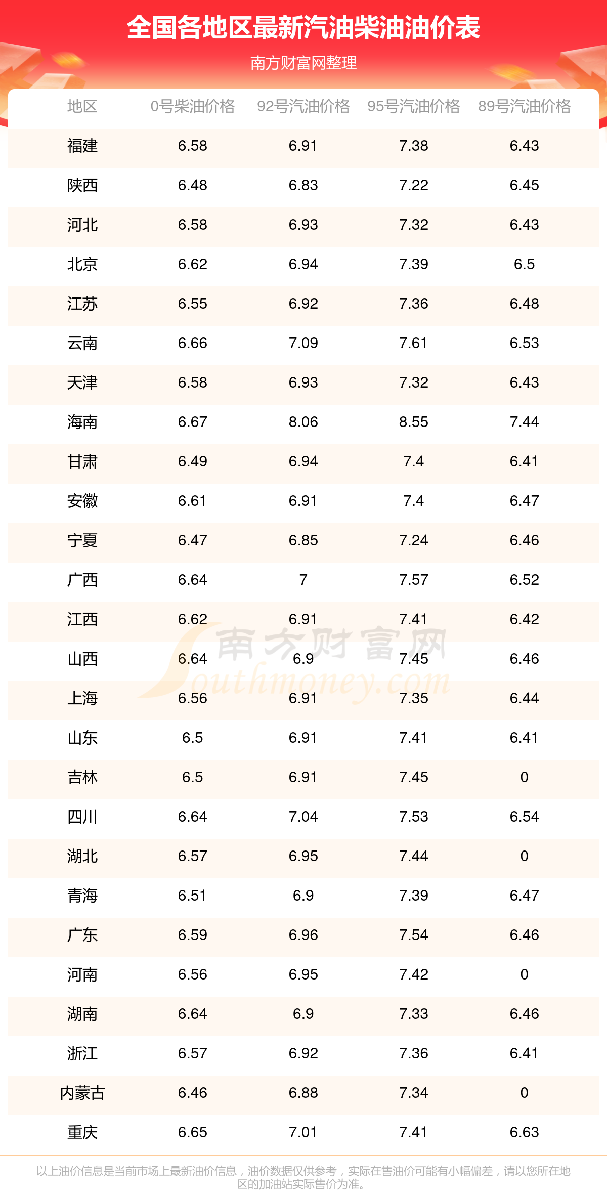 以上油价信息是当前市场上最新油价信息,油价数据仅供参考,实际在售油价可能有小幅偏差,请以您所在地区的加油站实际售价为准。