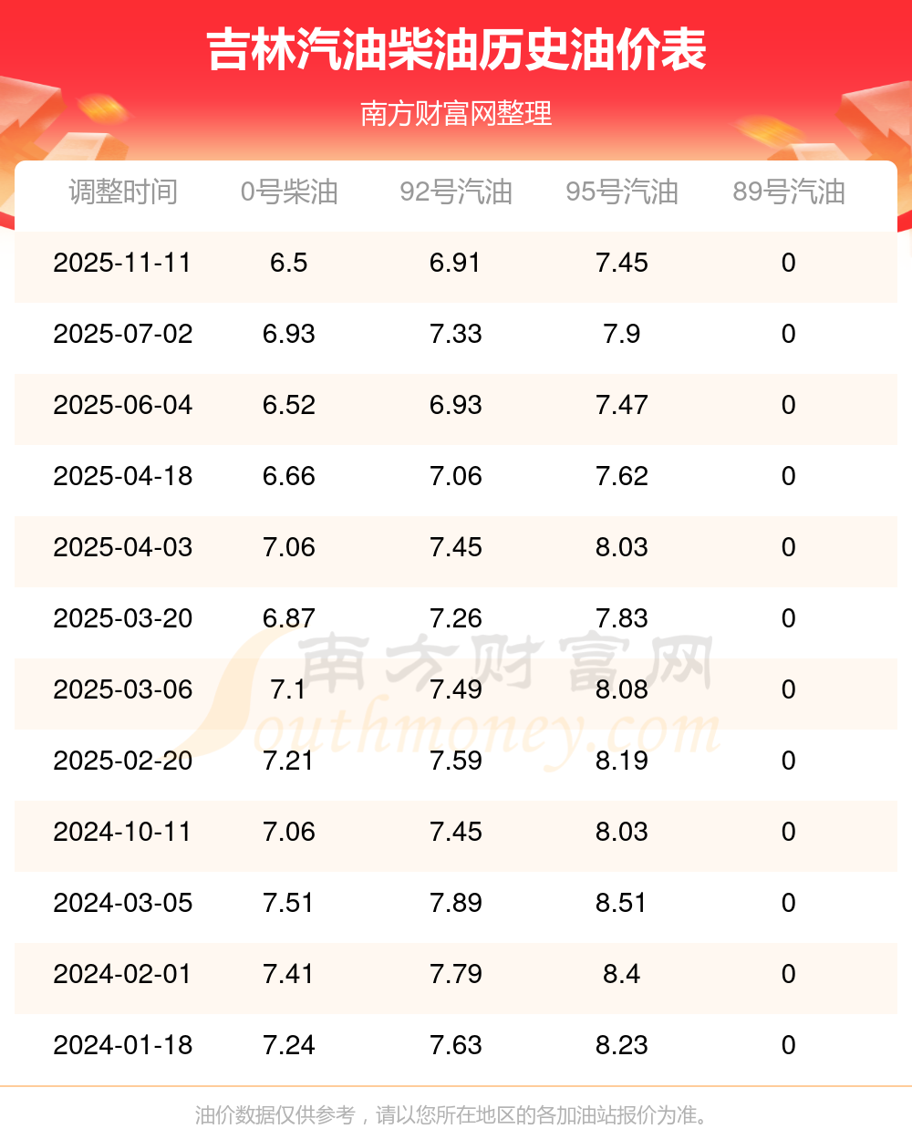 根据11月11日0号柴油最新调整价格6.5元/升来计算(以吉林为例),该车型每百公里的平均油费是77.675元,上一轮7月2日调整价格6.4元每升来计算,每百公里的平均油费是76.48元,对比上一轮多花1.195元,下一轮的油价调整时间是11月24日24时。