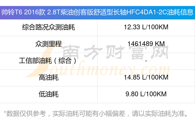 根据多位车主实测得出数据,该车型低油耗为9.80升每百公里,高油耗为14.85升每百公里,综合路况众测油耗为12.33升每百公里。