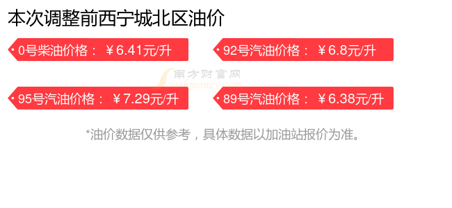 西宁城北区11月19日汽油价格一览:92号汽油6.9元;95号汽油7.39元;89号汽油6.47元;0号柴油6.51元(该价格为11月11日调整后的价格)。