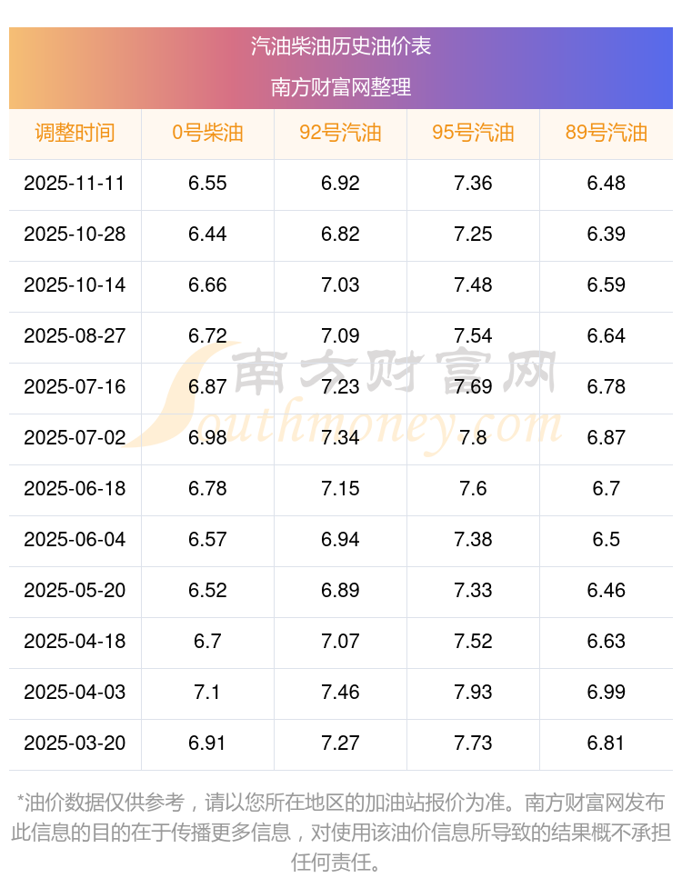 盐城92号汽油11月19日最新价格为6.92元每升,本轮油价调整时间为11月11日,相对上次调整时间10月28日的油价6.82元每升,共上调了0.1元,上调1.466%。下一轮油价调整时间11月24日24时,距离现在还有5.26天。