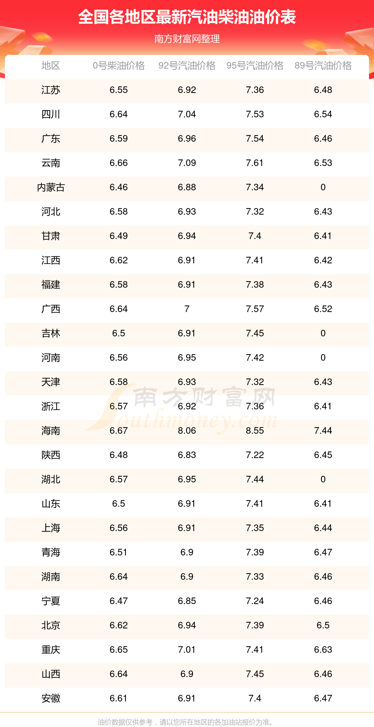 以上数据仅供参考,请以您所在地区的加油站实际售价为准。开云手机web版登录入口发布此信息的目的在于传播更多信息,对使用该油价信息所导致的结果概不承担责任。