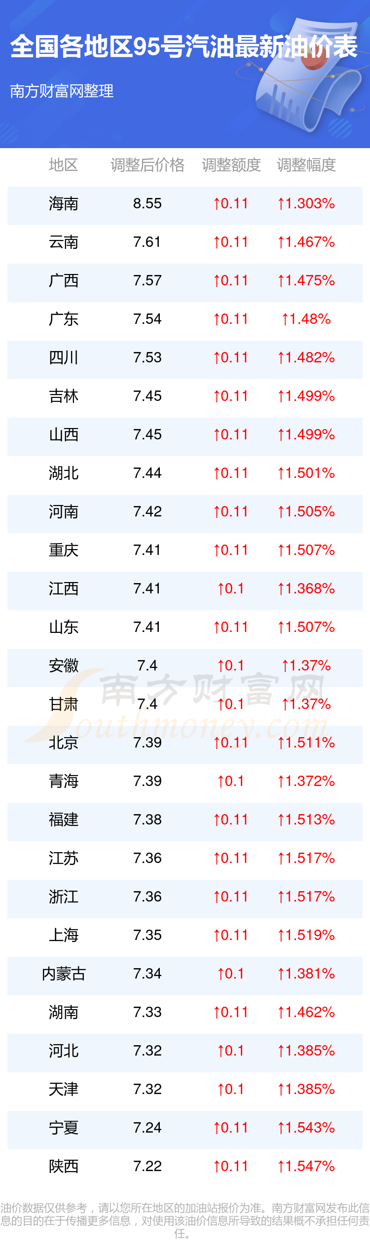 以上数据仅供参考,请以您所在地区的加油站实际售价为准。开云手机web版登录入口发布此信息的目的在于传播更多信息,对使用该油价信息所导致的结果概不承担责任。