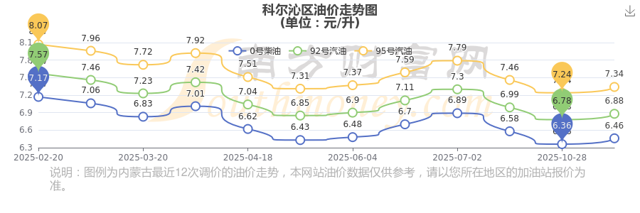 科尔沁区11月19日0号柴油历史油价调整走势图