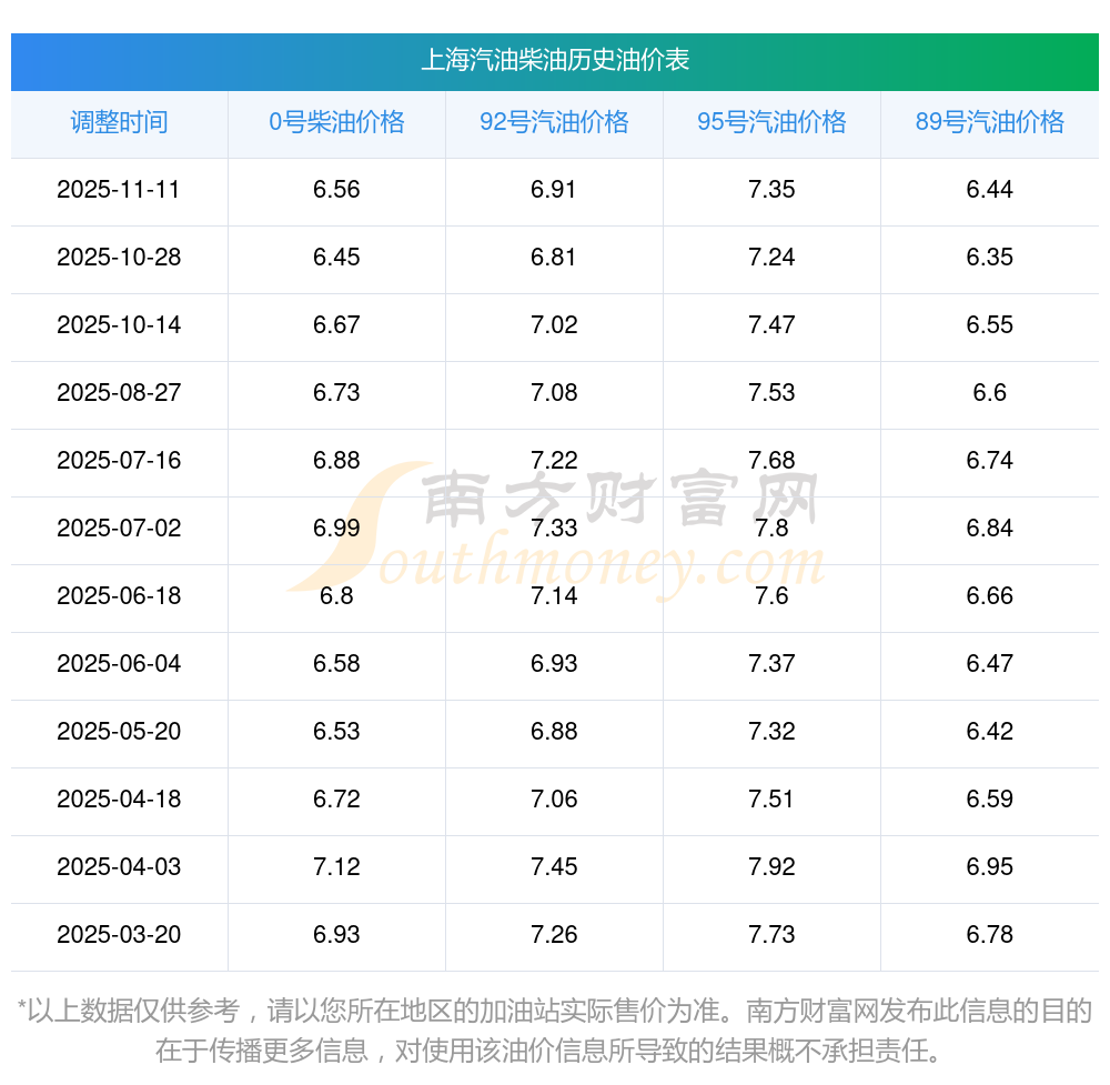 本站提供的油价数据仅供参考,具体数据以加油站报价为准。