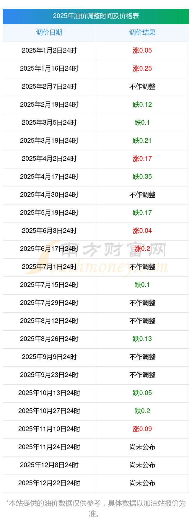 油价调整最新消息:下一轮油价调整时间11月24日24时。杭州桐庐县汽油、柴油11月19日的价格是多少钱一升?详情为:92号汽油为6.92元,涨了0.1元;95号汽油为7.36元,涨了0.11元;89号汽油为6.41元,涨了0.09元;0号柴油为6.57元,涨了0.11元,本次油价的调整时间为11月11日。