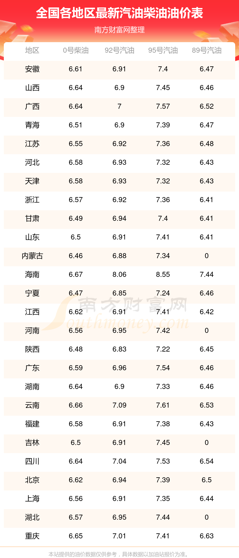 以上数据仅供参考,请以您所在地区的加油站实际售价为准。开云手机web版登录入口发布此信息的目的在于传播更多信息,对使用该油价信息所导致的结果概不承担责任。