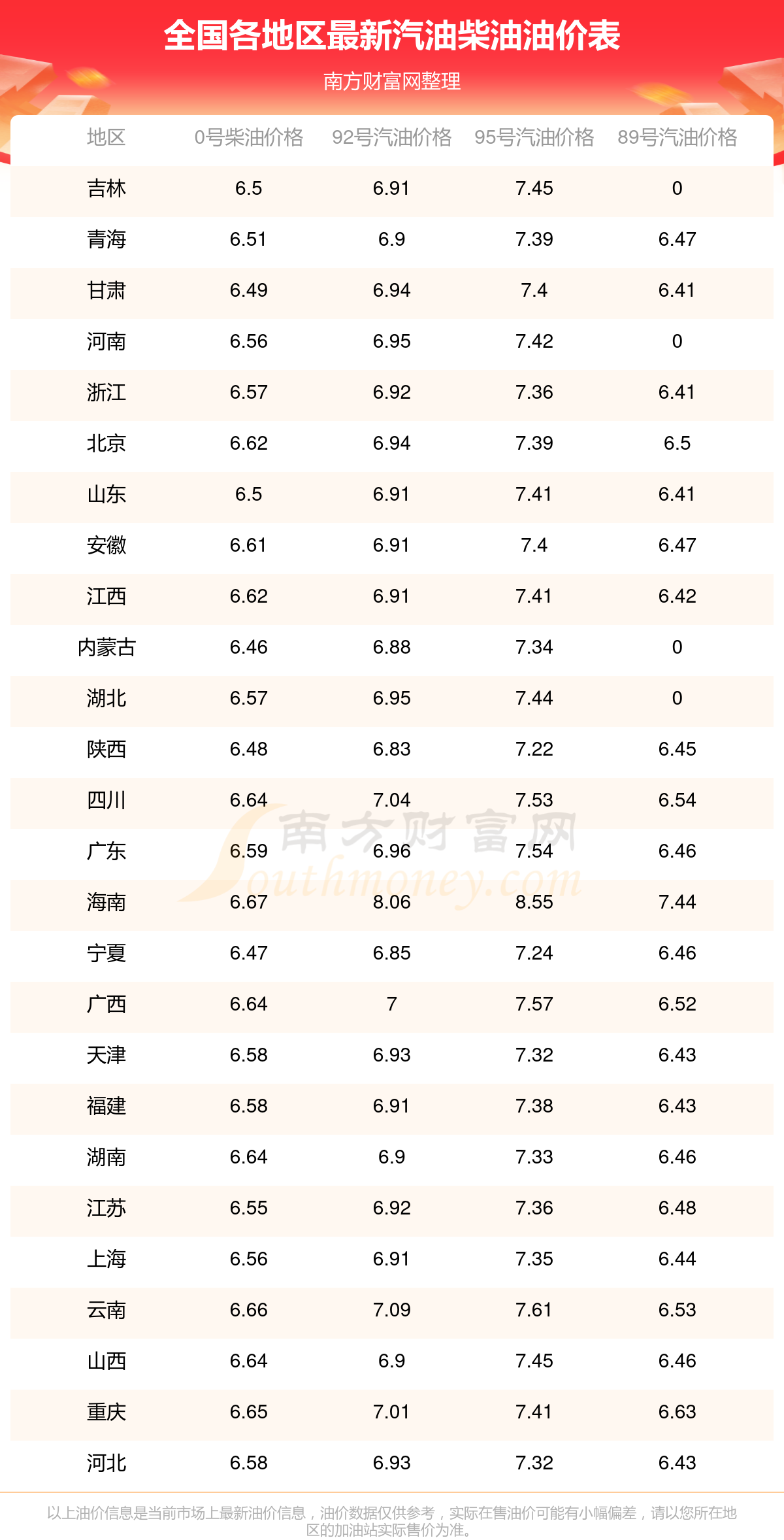 以上数据仅供参考,请以您所在地区的加油站实际售价为准。开云手机web版登录入口发布此信息的目的在于传播更多信息,对使用该油价信息所导致的结果概不承担责任。