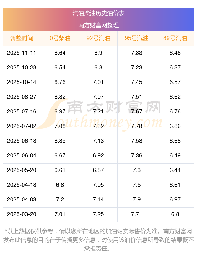 2025年92号汽油价格一览表