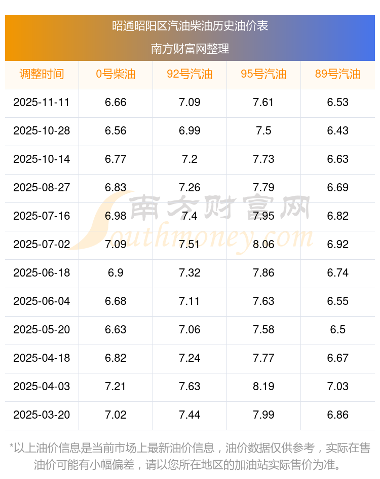 昭通昭阳区历史油价表